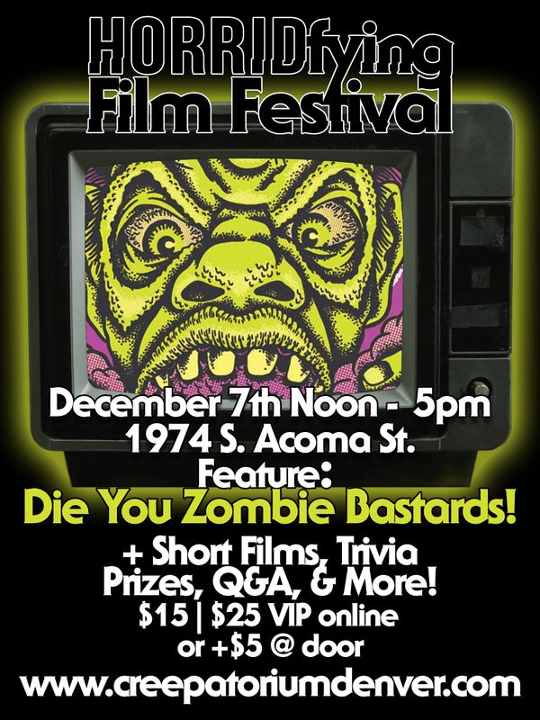 Every 1-2 months Creepatorium will be overrun for a Sunday Matinee that is the HORRIDfying Film Fest. Featuring independently made shorts and features, trivia, prizes, intros/Q&A's with filmmakers, exclusive small batch tie-in Horrifying Hot Sauce and art, and more! Tickets are $15 or $25 for VIP if pre-purchased, or $20/$30 at the door