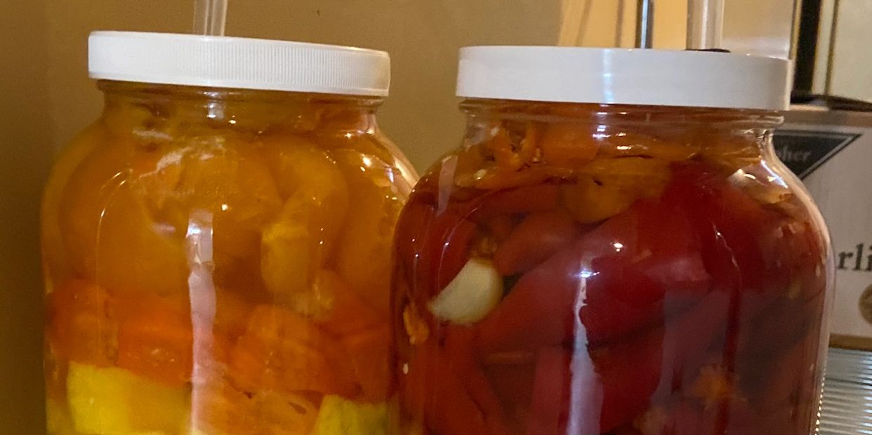 Ryan starts with fresh (and frozen) peppers, vegetables, and fruits, gives them a rough chop, and places them in a brine solution. Then Ryan gives them time to mature, and over the next few weeks the naturally occurring Lactobacillus will break down the mash, giving a depth of flavor you can't get without fermenting. Then Ryan takes the fermented mash in addition to the brine it fermented in, adds additional fresh ingredients and vinegar, blends it up, cooks it, and bottles. Our sauces are pasteurized, so they are shelf and bottle stable, and will stay good (without contamination) for a very long time.