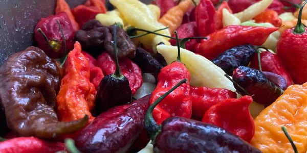 Most of HHS' peppers come from a local produce supplier in Denver, but when HHS needs really hot or weird peppers, we look to small growers throughout the us to help us get the coolest, most interesting, and hottest peppers out there! Some of HHS' favorite ingredients (besides manzaños) are chocolate habaneros, piloncillo sugar, hibiscus flowers, dried NM chile, and various fruits from blueberries to plums to dragon fruit!