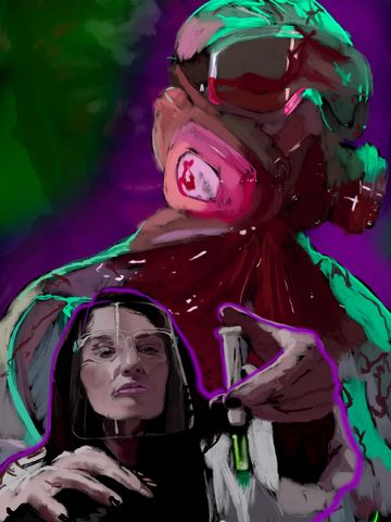 Alpha-21 is a collaboration with filmmaker J.R. Bookwalter for his film Side Effects May Vary, an icky-sticky social satire that substitutes the "Atomic hysteria" of  the 50's with the recent pandemic, and fills it with plenty of oozy  gore. This sauce is an extra hot version of our verde sauce, OMG!!!!!!!, and has additional yellow habanero and yellow ghost peppers on top of that base.